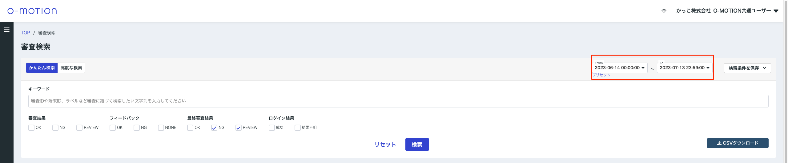 審査の抽出が可能となります。