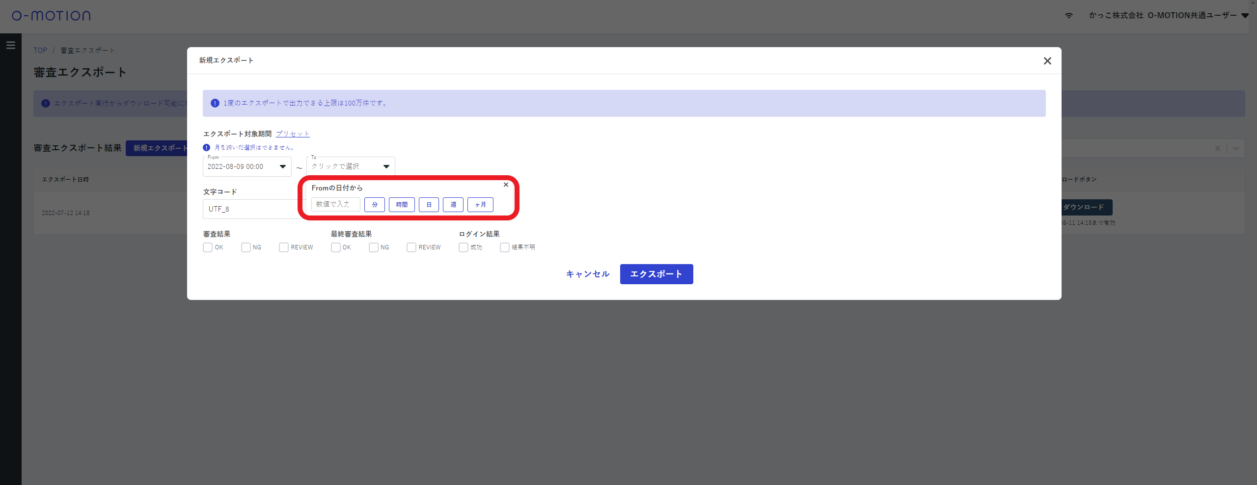 審査エクスポート エクスポート対象期間入力を相対的に指定する機能を追加