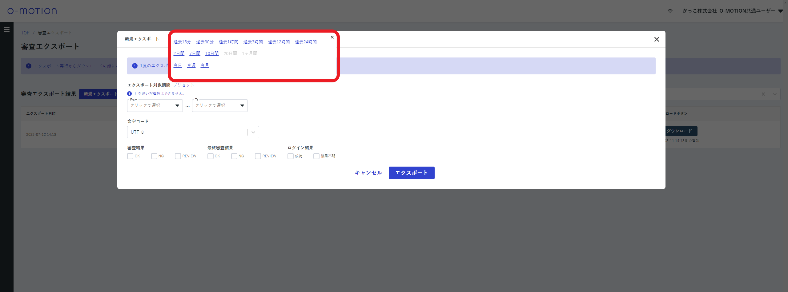 - 審査エクスポート エクスポート対象期間入力のプリセットボタンを追加