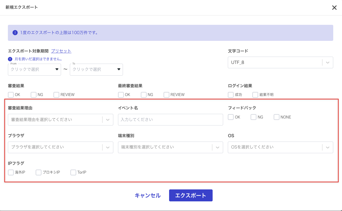 お客様からのご要望を受け、審査エクスポート機能における抽出条件を拡充しました。
