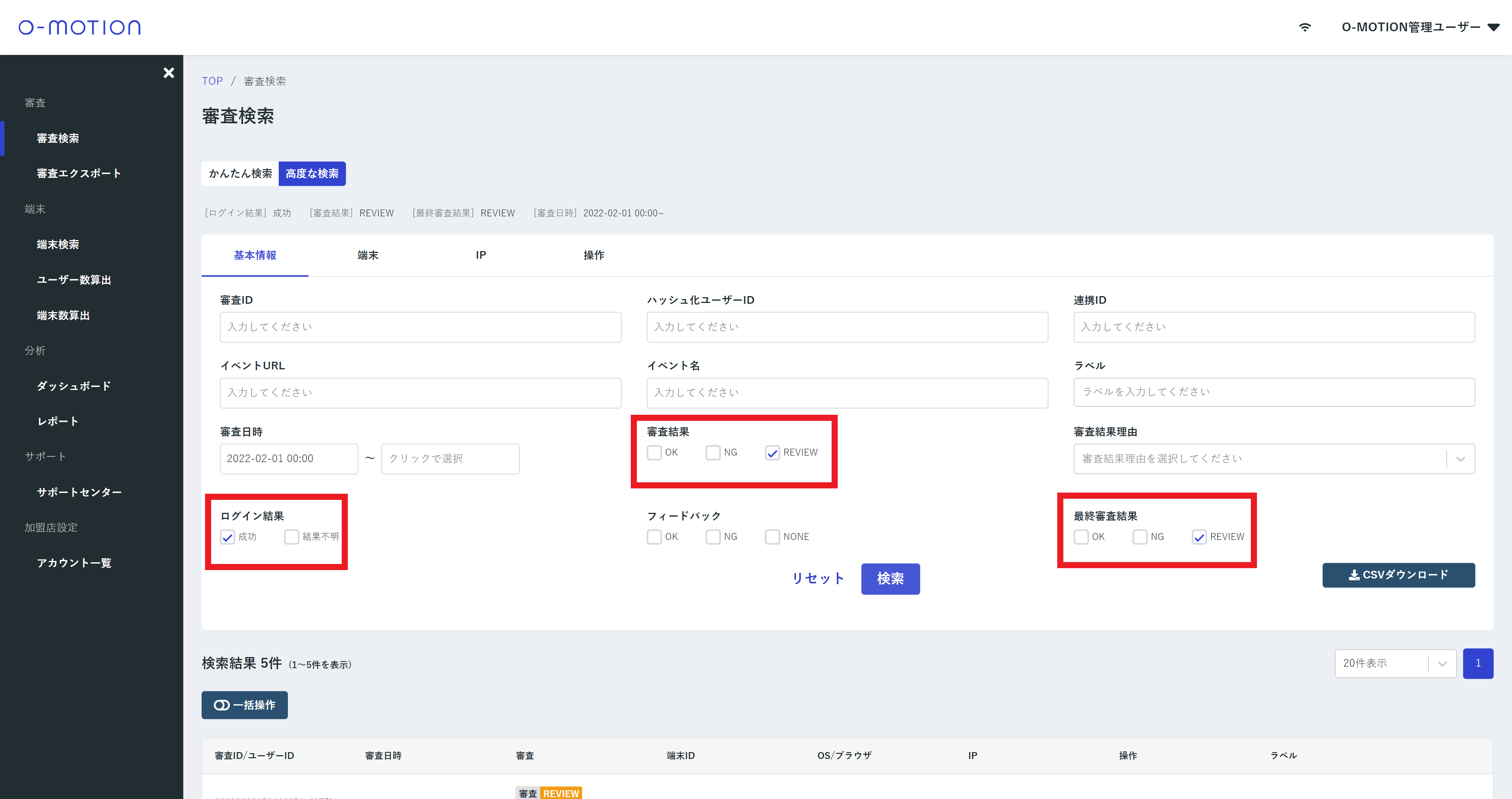 2. 審査結果とログイン結果を指定する