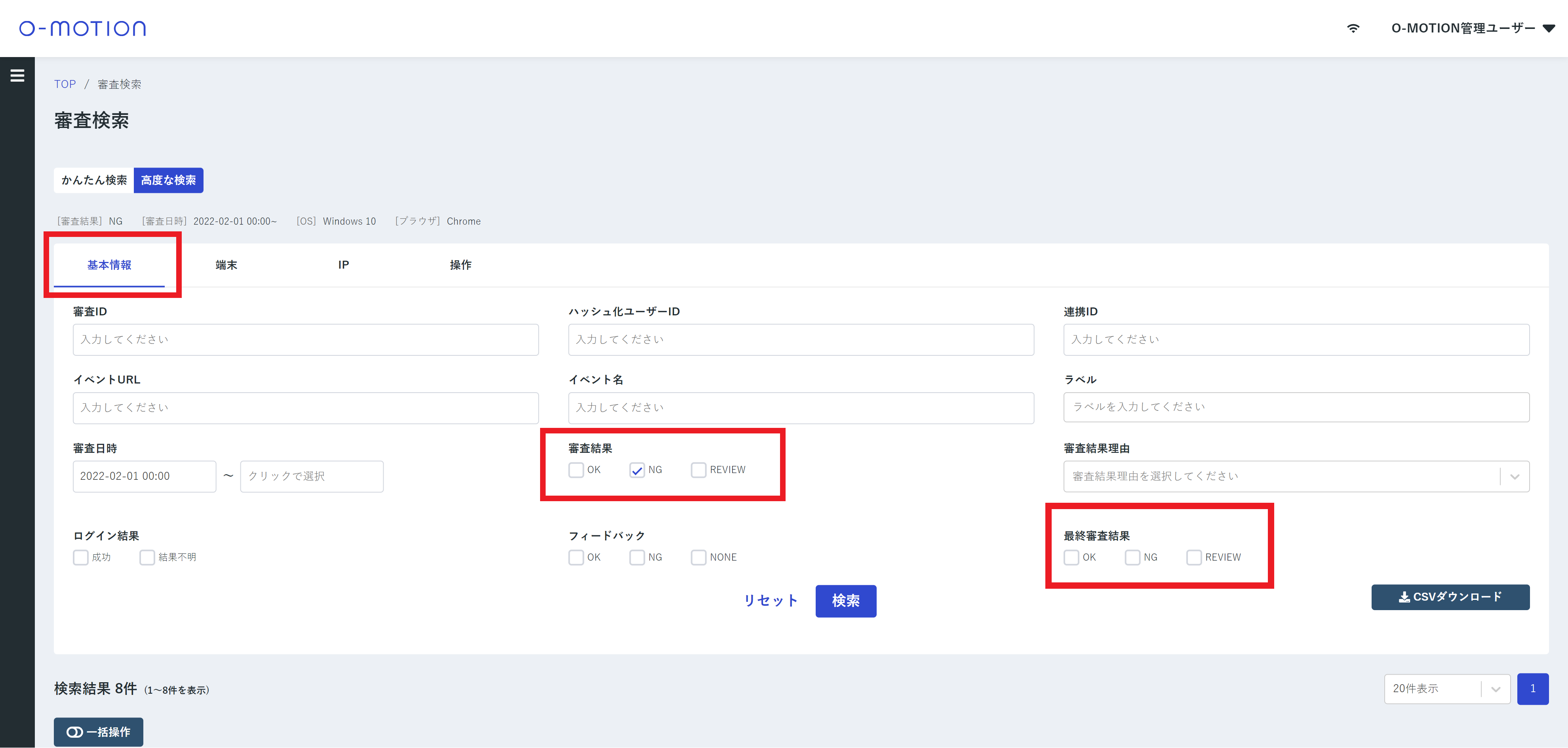 「検索結果」に今回指定した以下の条件で絞り込まれた検索結果が一覧表示されます。
