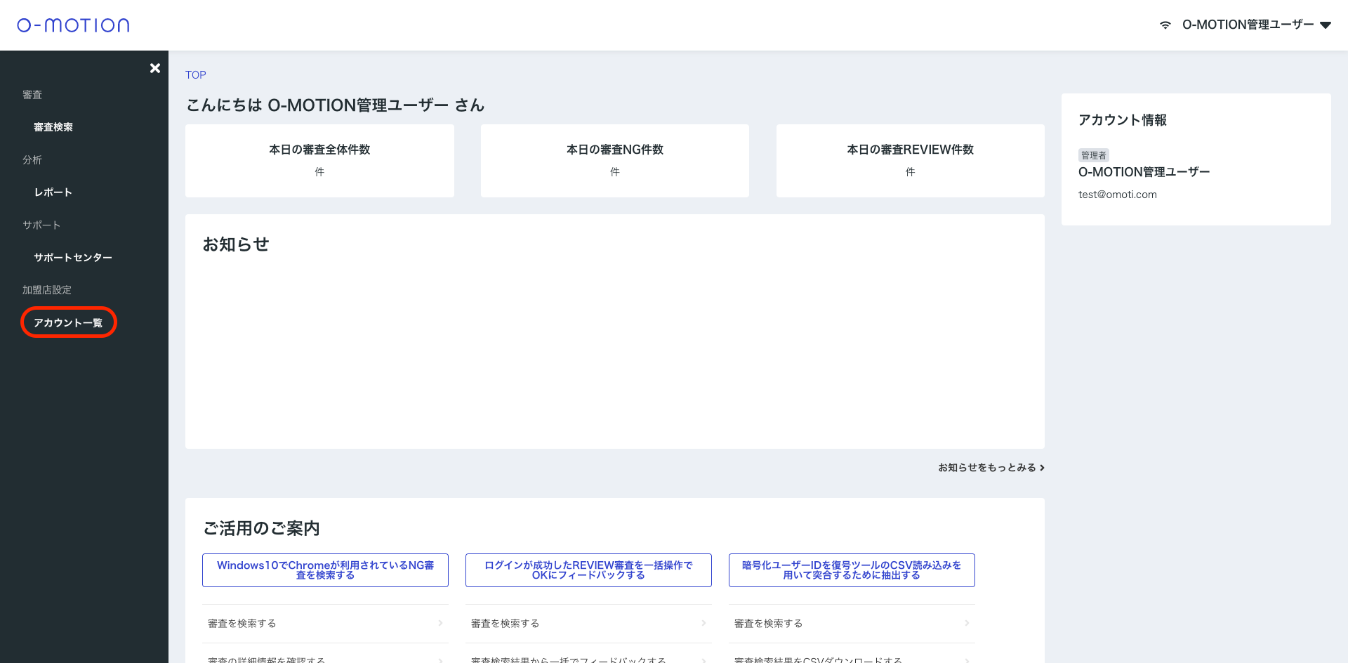 ※ アカウントの新規追加/他アカウント情報の編集は管理者権限を持つアカウントのみが可能です。