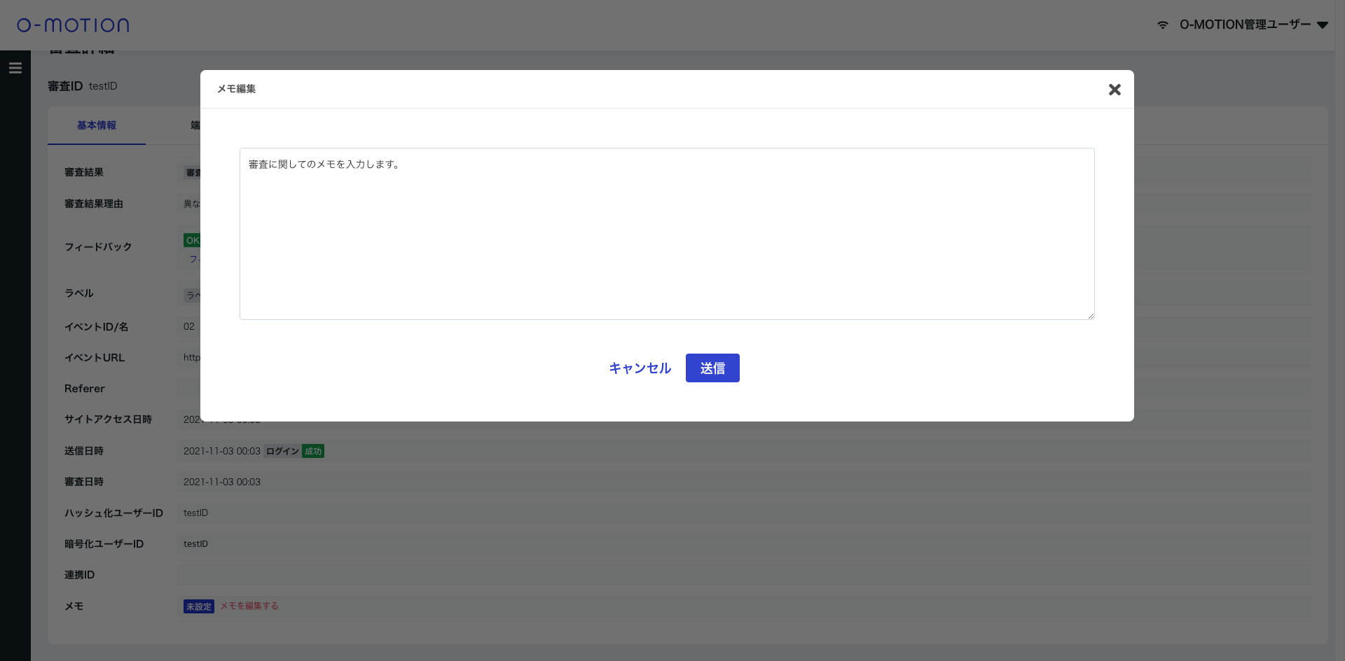 審査詳細 メモ編集モーダル