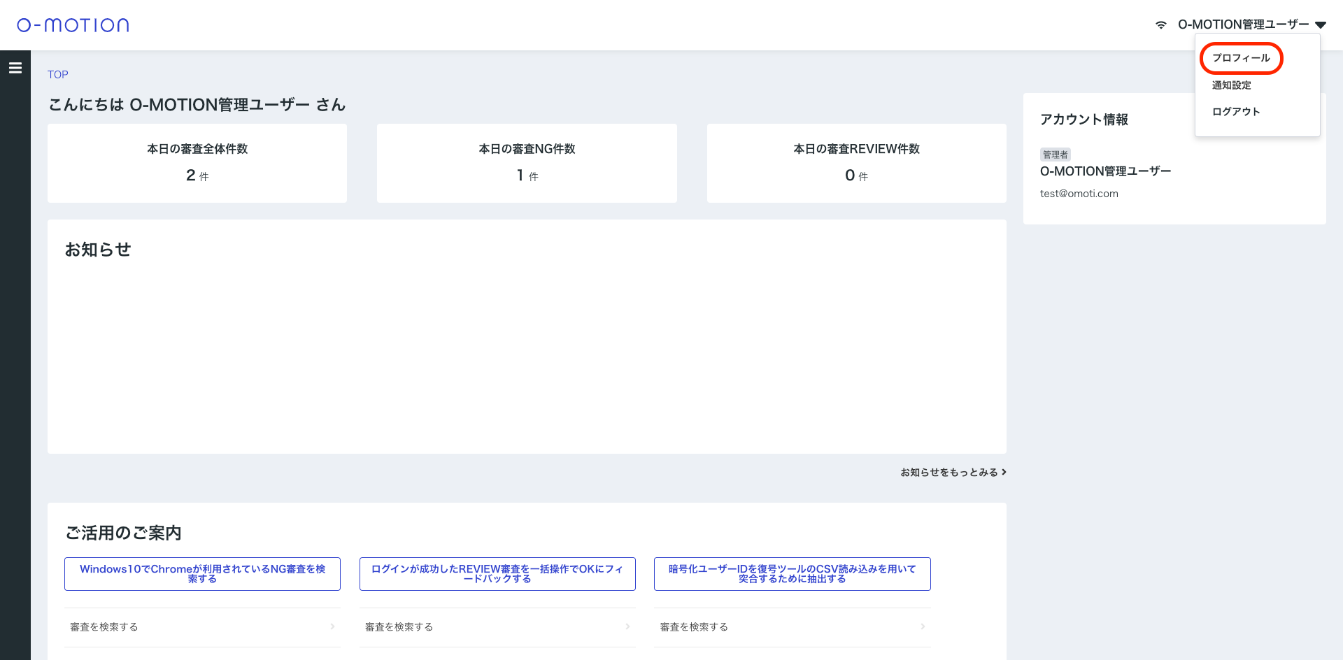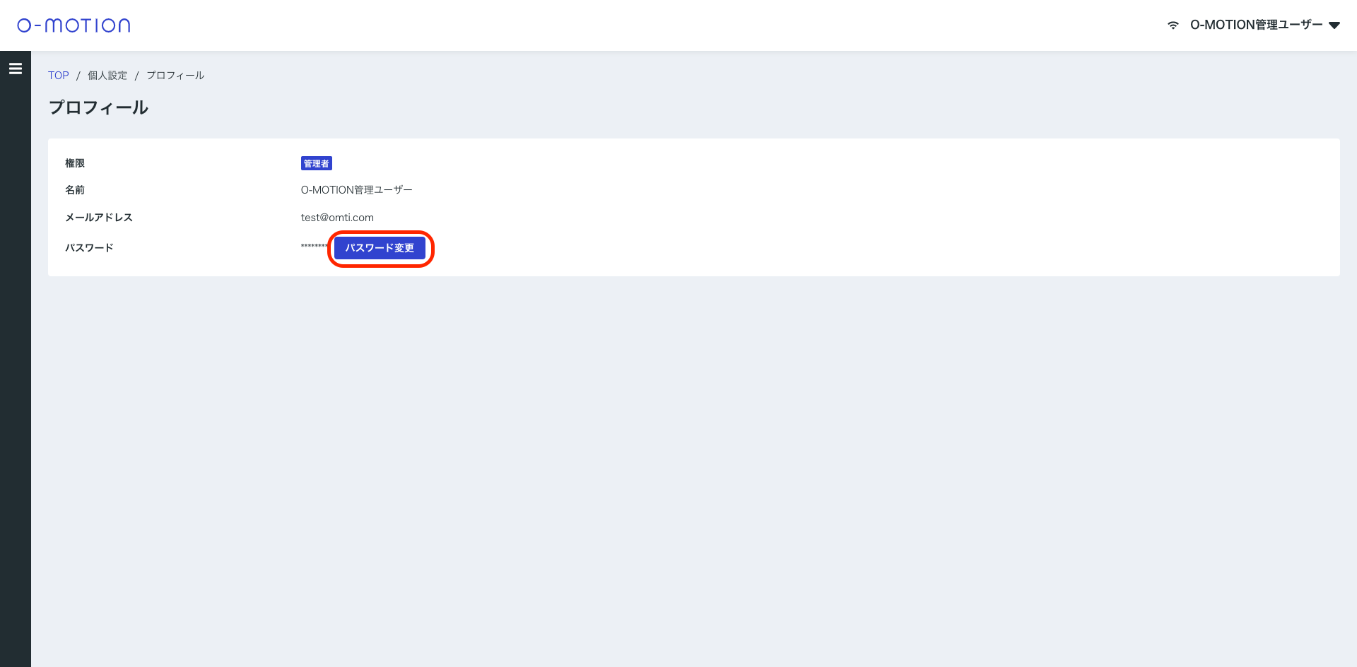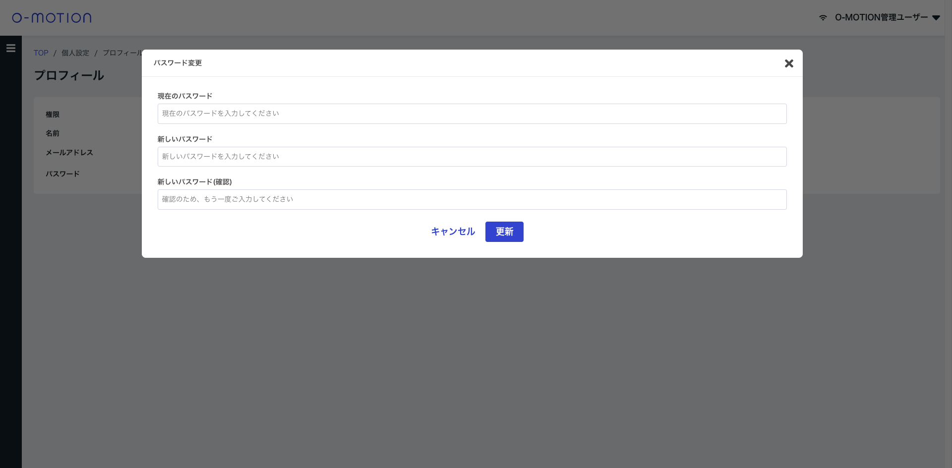 O-MOTION管理画面 ヘッダー