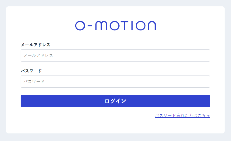 O-MOTION管理画面にアクセスするとログインページが表示されます。