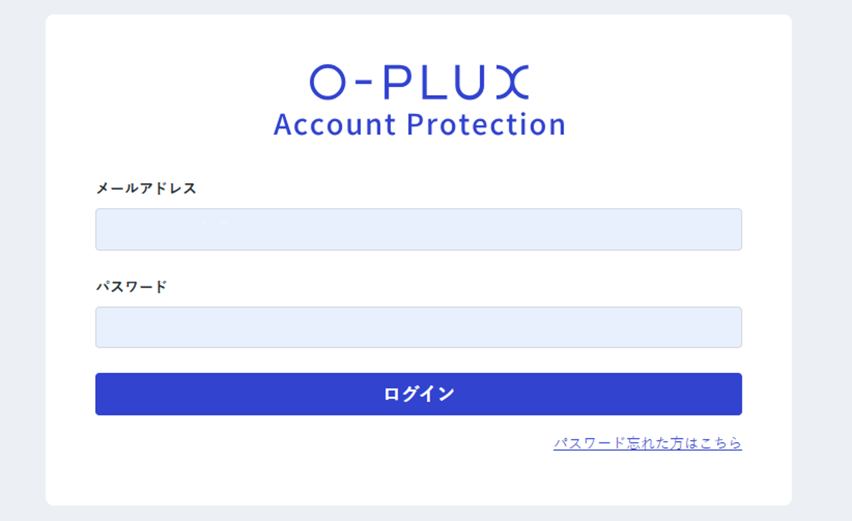 O-PLUX Account Protection管理画面にアクセスするとログインページが表示されます。