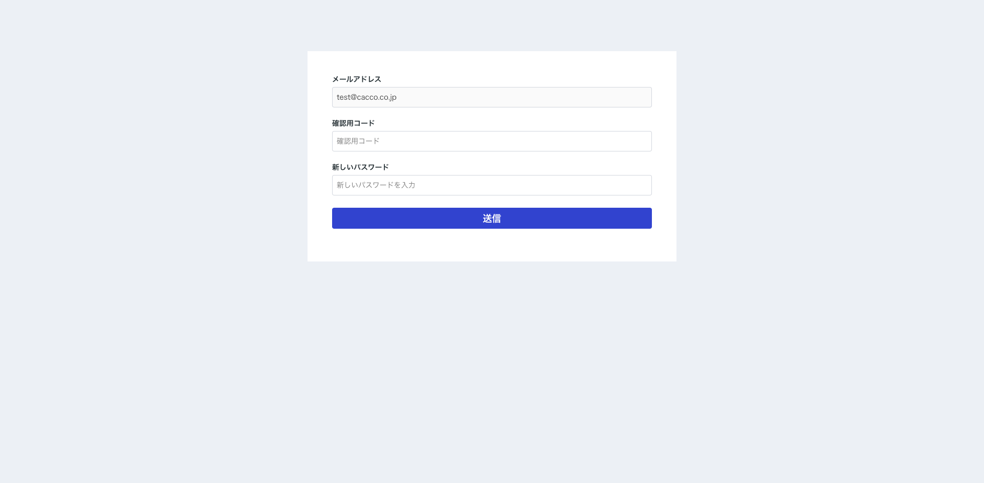 その後「新しいパスワード」に新しいパスワードを入力し「送信」ボタンを押下してください。